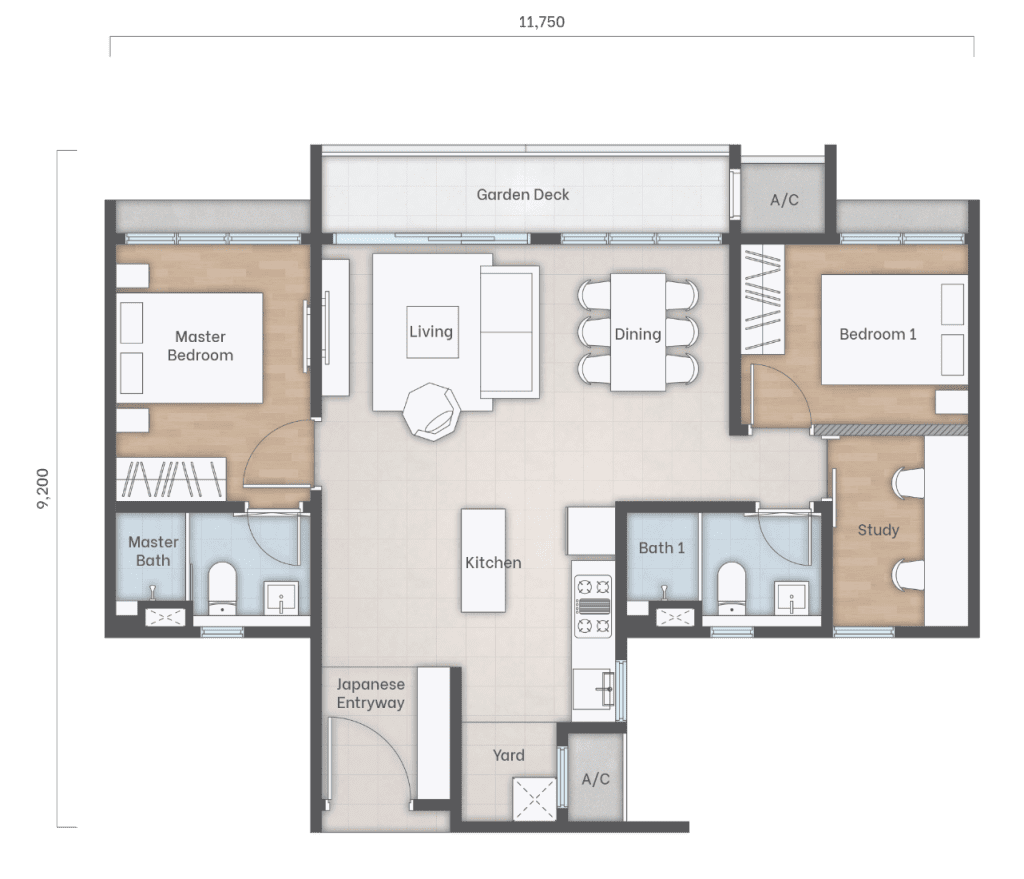 Discover a residence intricately woven into a peaceful and tranquil environment. Unwind in a versatile and functional space that seamlessly adapts to your evolving needs. Whether you are a young couple, a growing family, or engaged in multigenerational living, these thoughtfully designed homes cater to every family’s requirements with flexible spaces and a north-south orientation that minimises the impact of the afternoon sun. Experience the blissful sanctuary where cherished moments and boundless joy come to life.